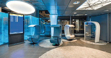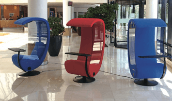 Suomalainen Evävaara Design on vastannut tähän haasteeseen suunnittelemalla erilaisia innovatiivisia työtiloja, kuten esimerkiksi ”sshhh” -sarjan akustisia työpisteitä, jotka tarjoavat rauhallisen ympäristön keskittymiseen.“Meidän tuotteemme menevät 95 prosenttisesti vientiin”, Antti Evävaara kertoo. “Yliopistot, lentokentät, museot ja tietysti kirjastot ovat löytäneet meidän ratkaisumme yritysmaailman ohella ja erityisesti meitä on kiitelty akustiikan lisäksi hyvästä ilmanvaihdosta”, Evävaara toteaa.