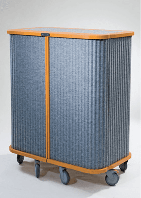 “Monestihan tämän kaltaiset akustiset ratkaisut ovat niin painavia, että niiden liikutteluun tarvitaan paljon miestyövoimaa tai laitteita, mutta meidän ratkaisumme liikkuvat kevyesti työpisteestä toiseen ihan käyttäjän omin voimin, Evävaara painottaa.
