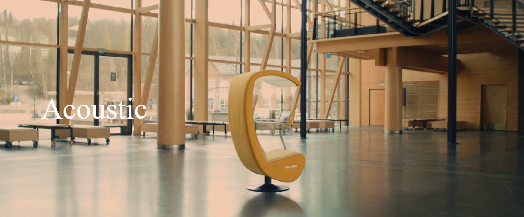 Suunnittelu lähti siis ilmiselvästä tarpeesta ja syntyi ensimmäinen akustinen tuolikaluste.